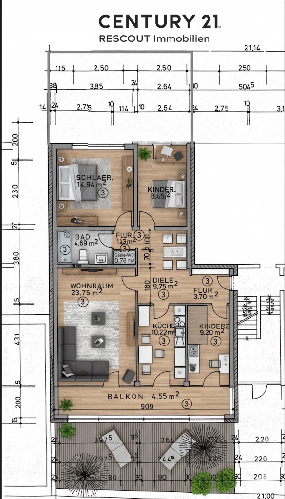 Visualisierungen von Innen-und Aussenansichten dienen nur zur Illustration einer Gestaltung oder Bebauung. Die dort visualisierte Inneneinrichtung ist nicht mit örtlichen Baubehörden/Statikern/Architekten abgestimmt bzw. genehmigt. Eine abschließende Genehmigung eines Bauvorhabens muss der Käufer immer mit den zuständigen Stellen und Fachfirmen abstimmen.
