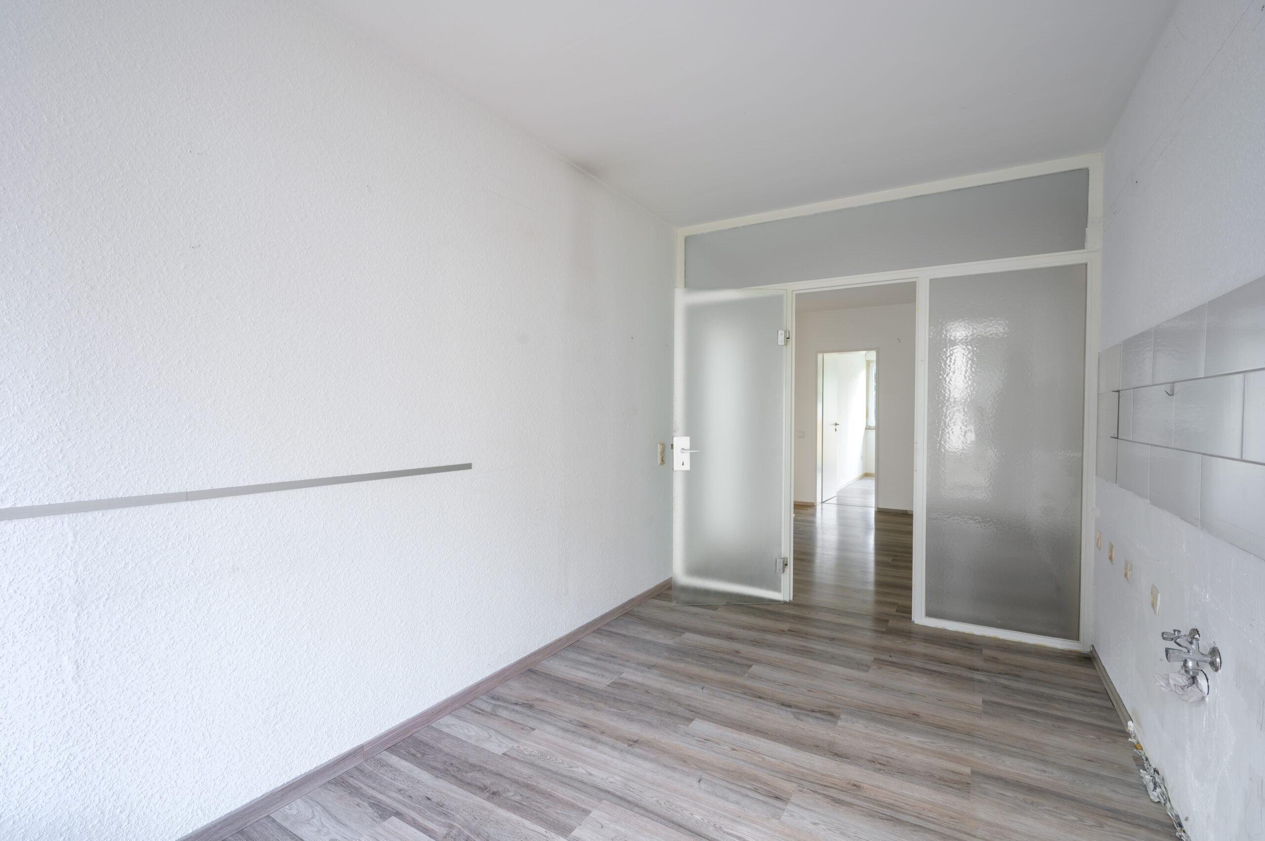 Das Herzstück der Wohnung ist der offen gestaltete Wohnbereich mit Küche: Eine bodentiefe Fensterfront über die gesamte Wohnungsbreite lässt Tageslicht in jeden Winkel strömen und schafft eine warme, freundliche Atmosphäre. Ob gemeinsames Kochen, Spielen, Arbeiten oder Entspannen – hier findet das Leben statt.