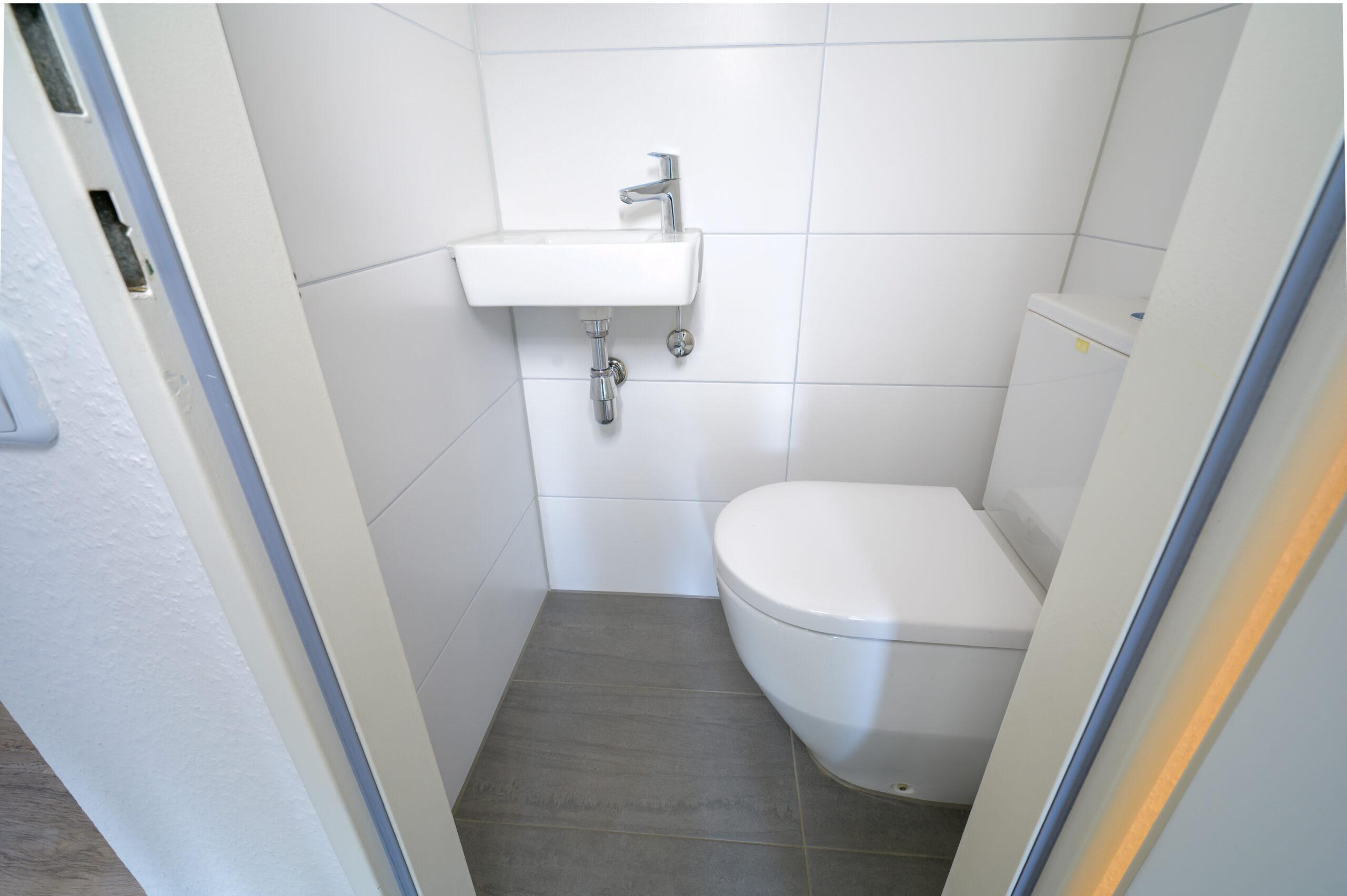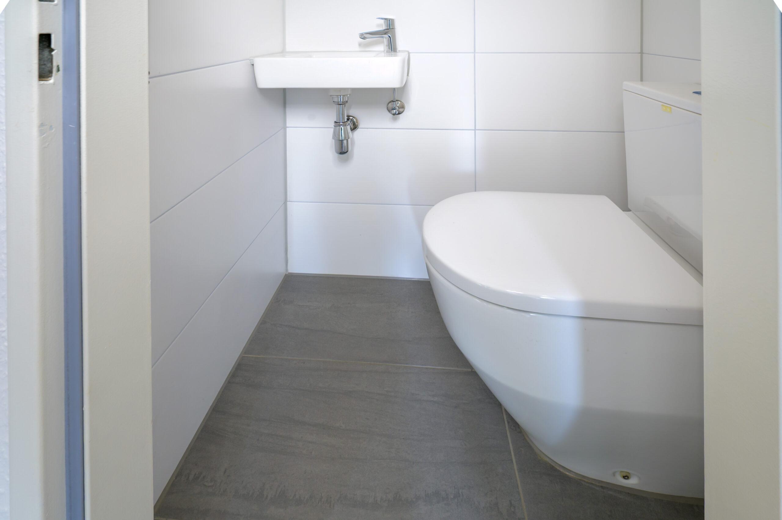 Das vor zwei Jahren sanierte Badezimmer überzeugt mit zeitlosem Design und moderner Ausstattung. Ein neu installiertes Gäste-WC sorgt für zusätzlichen Komfort.