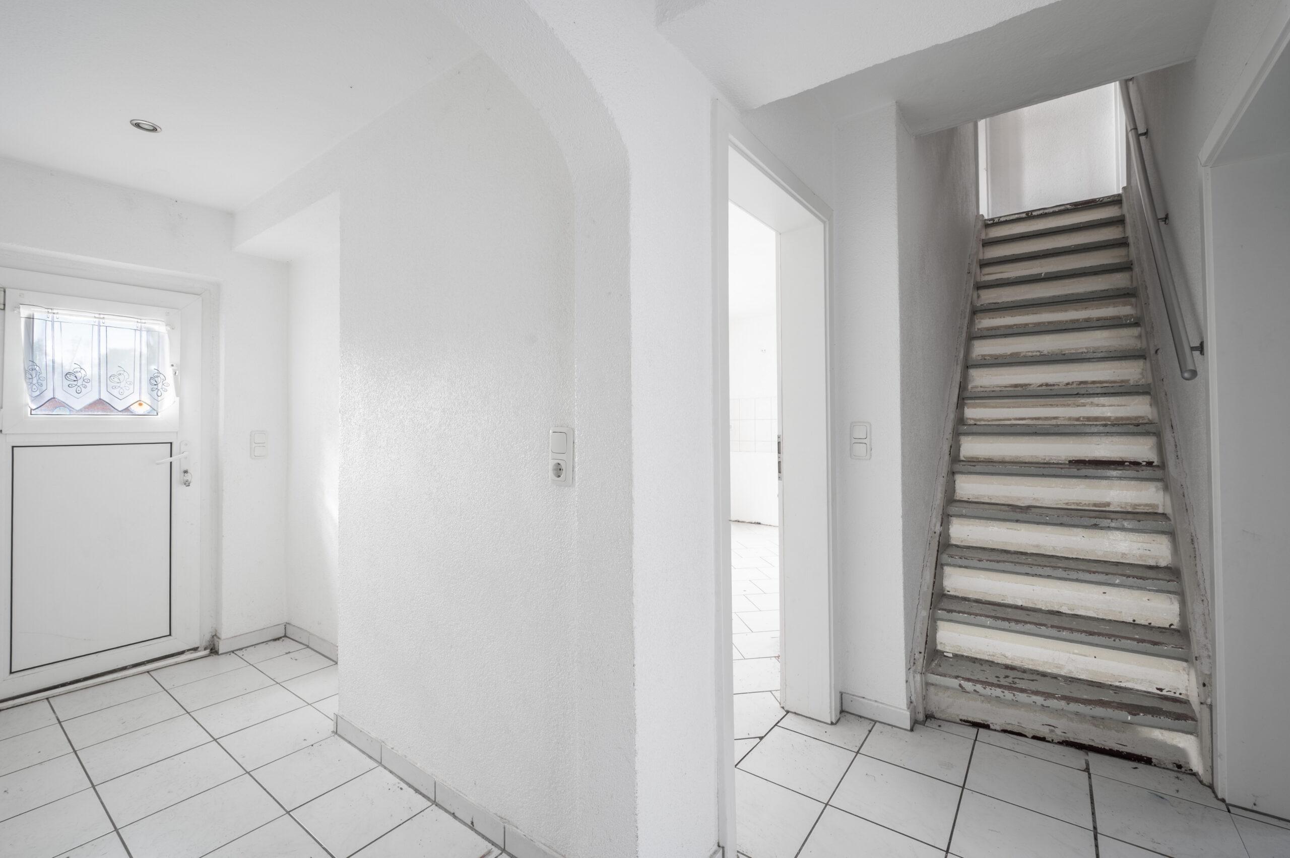 Im Erdgeschoss bildet das neu ergänzte Highlight den Mittelpunkt: ein helles, gut proportioniertes Wohnzimmer – . Ebenfalls auf dieser Ebene befindet sich ein Tageslicht-Badezimmer. Eine Einbauküche ist nicht vorhanden, sodass Sie Ihre Küche ganz nach eigenen Vorstellungen planen können