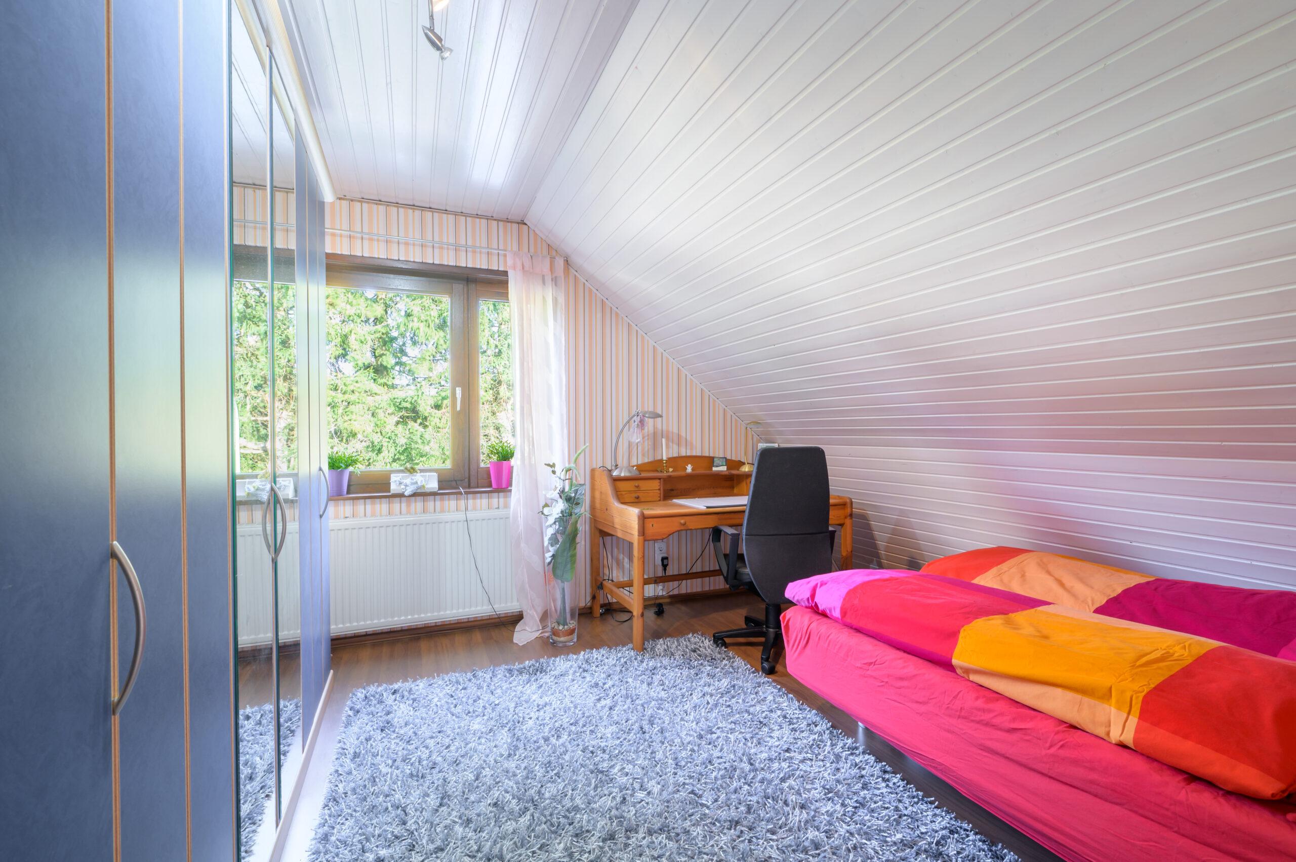 Im Obergeschoss stehen fünf weitere Zimmer sowie ein Bad mit nahezu ebenerdiger Dusche zur Verfügung. Das offene Gaubenzimmer führt auf einen großen Balkon und verleiht der Etage eine besondere Großzügigkeit. Der über eine Auszugstreppe erreichbare Speicher bietet zusätzlichen Stauraum. Eine geräumige, über das Treppenhaus zugängliche Garage mit Zwischenboden rundet das Raumangebot ab.