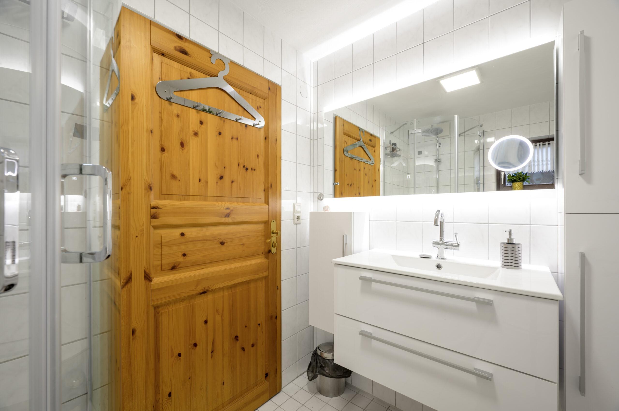 Das Untergeschoss wurde als eigenständiger Wohnbereich konzipiert. Es umfasst einen großen Verteilerflur, der vielseitig nutzbar ist, zwei helle Gästezimmer, ein Duschbad sowie ein weiteres großes Zimmer. Ergänzt wird die Ebene durch Hauswirtschafts-, Vorrats- und Heizraum. Durch den direkten Zugang vom Windfang kann das UG ohne Betreten der Erdgeschossräume erreicht werden – ideal für eine separate Wohneinheit; entsprechende Anschlüsse für eine Küche sind bereits vorhanden.