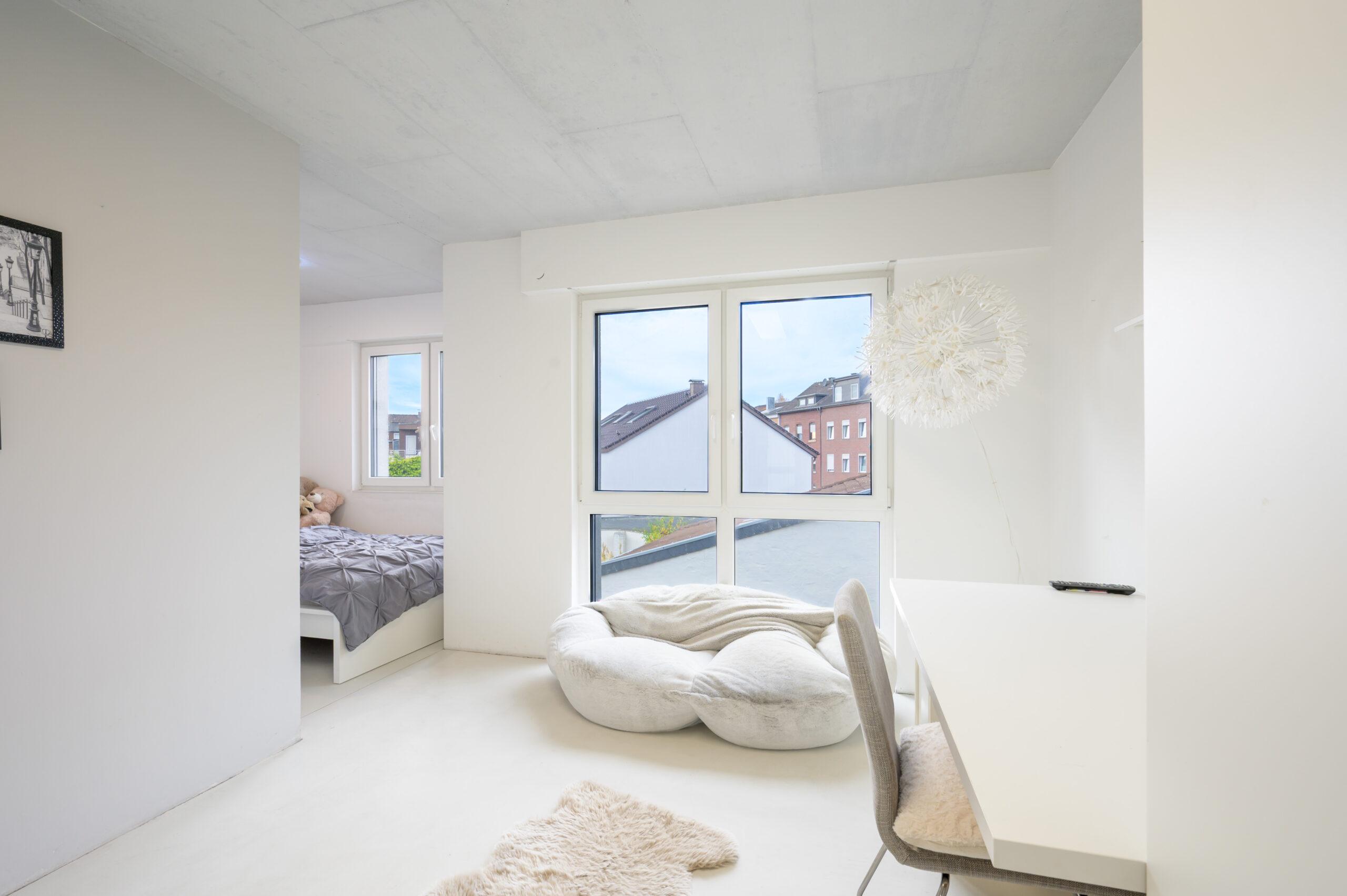 Die weiteren Etagen bieten insgesamt sieben vielseitig nutzbare Zimmer – ideal als Schlafzimmer, Kinderzimmer, Gästezimmer oder Arbeits- und Kreativräume. Die beiden modernen Bäder im 2. und 3. Obergeschoss folgen dem gleichen Designkonzept: Betonoptik, bodengleiche Duschen, hochwertige Sanitärkeramik, Design-Waschtische und großformatige Spiegel sorgen für ein gehobenes, zeitloses Badezimmererlebnis.