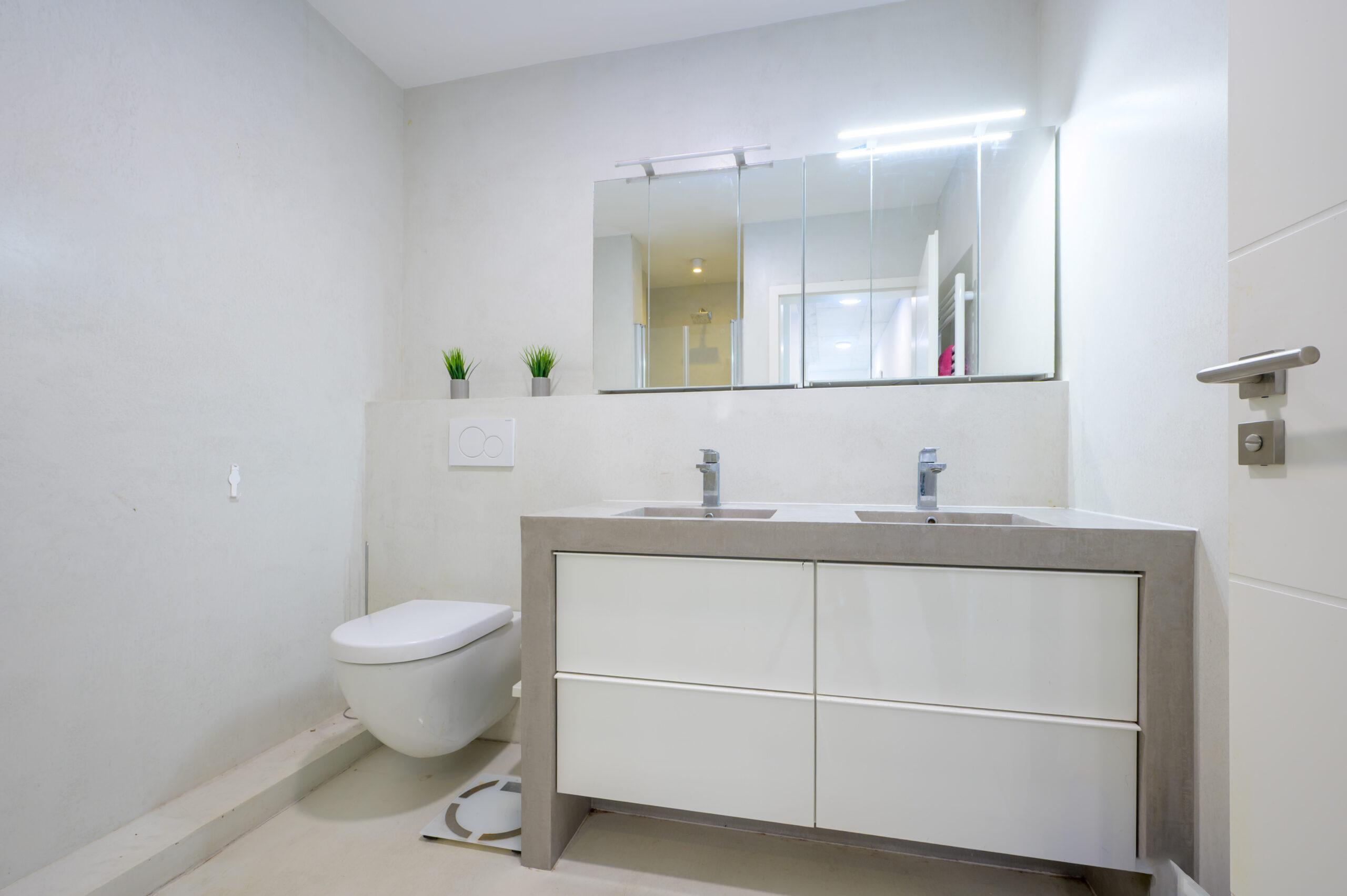 • Moderne Sichtbetonoptik an Wänden und Bodenflächen