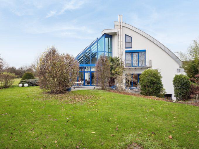 Dieses außergewöhnliche Architektenhaus aus dem Jahr 1998 verbindet stilvolle Architektur,…